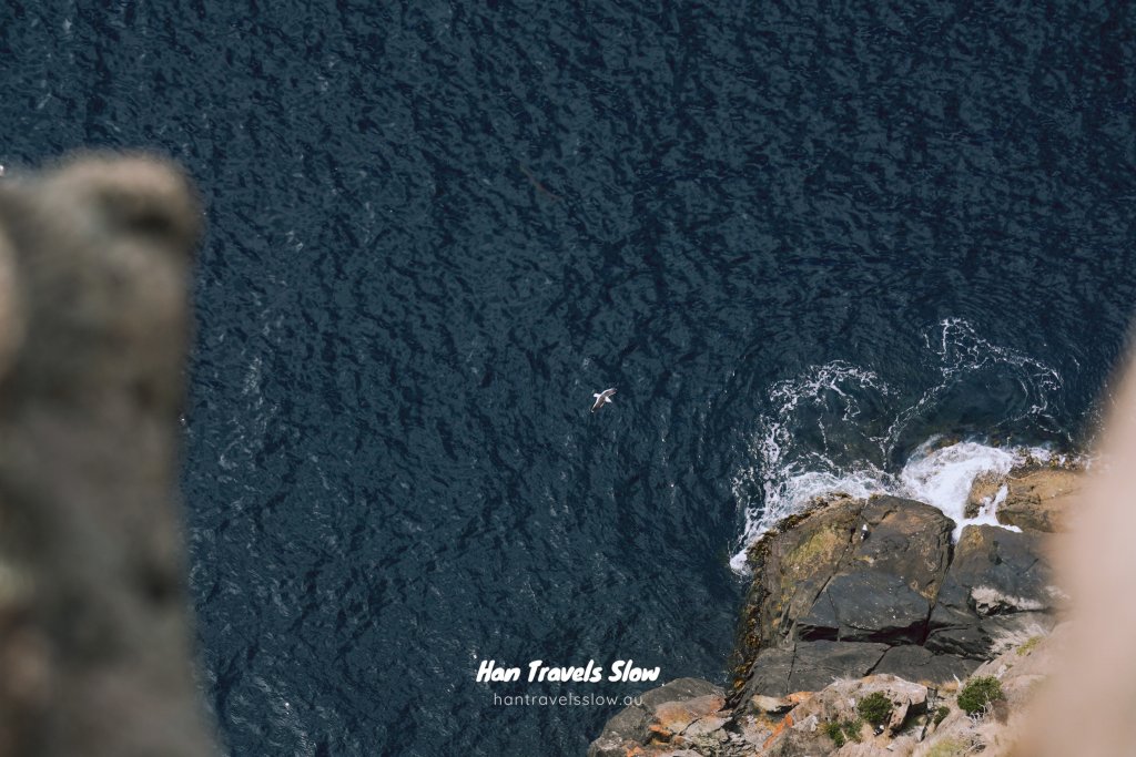 The columns drop sheer into the water far below, and the waves work constantly against their base, shifting the colour of the water between deep blue, white, and turquoise in a display that is very hypnotic!
