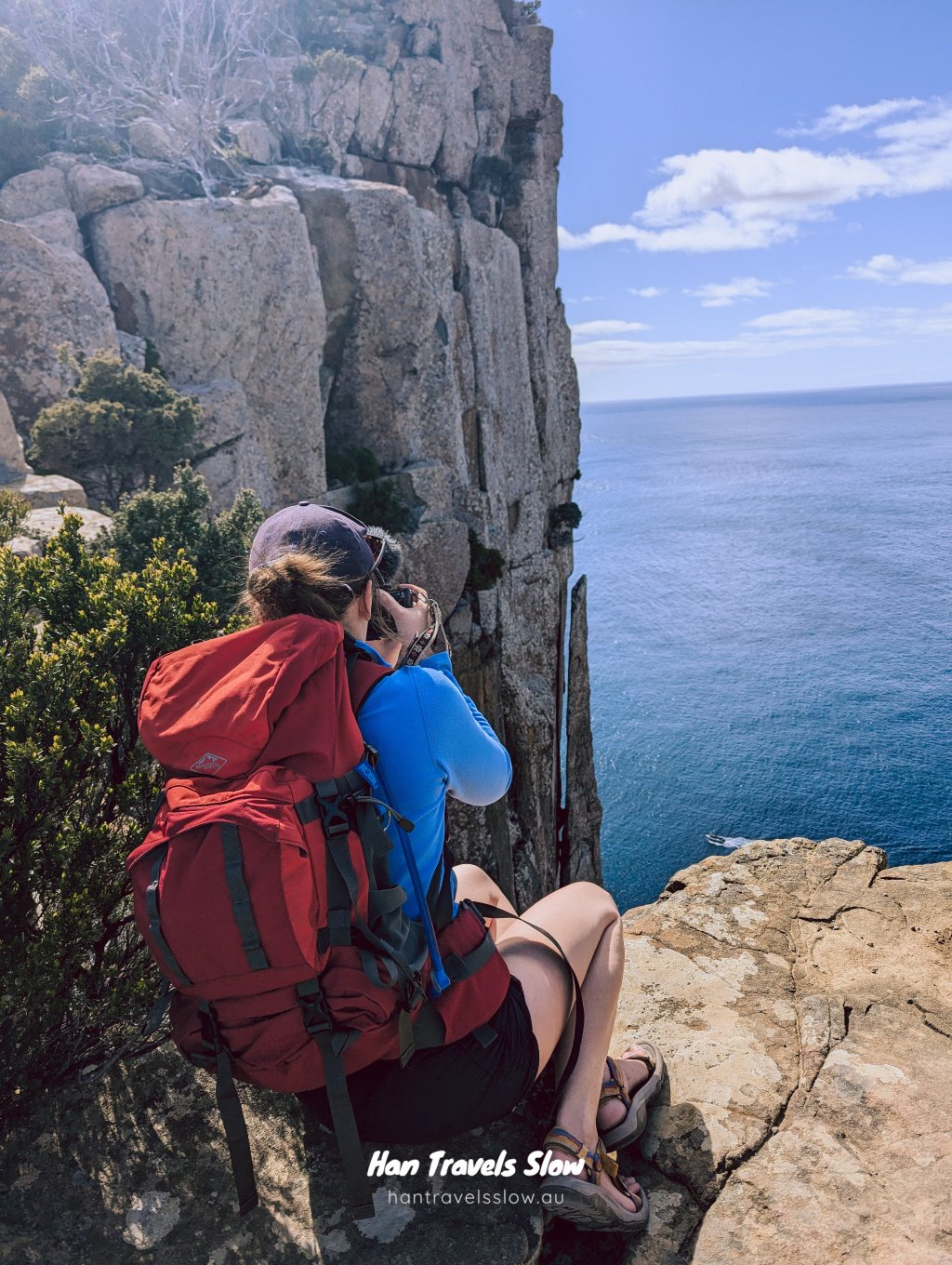 The Cape Hauy loop is 9.4km and takes most walkers around 4 hours, though this can stretch considerably if you stop for a long lunch at the lookout, which is strongly recommended.