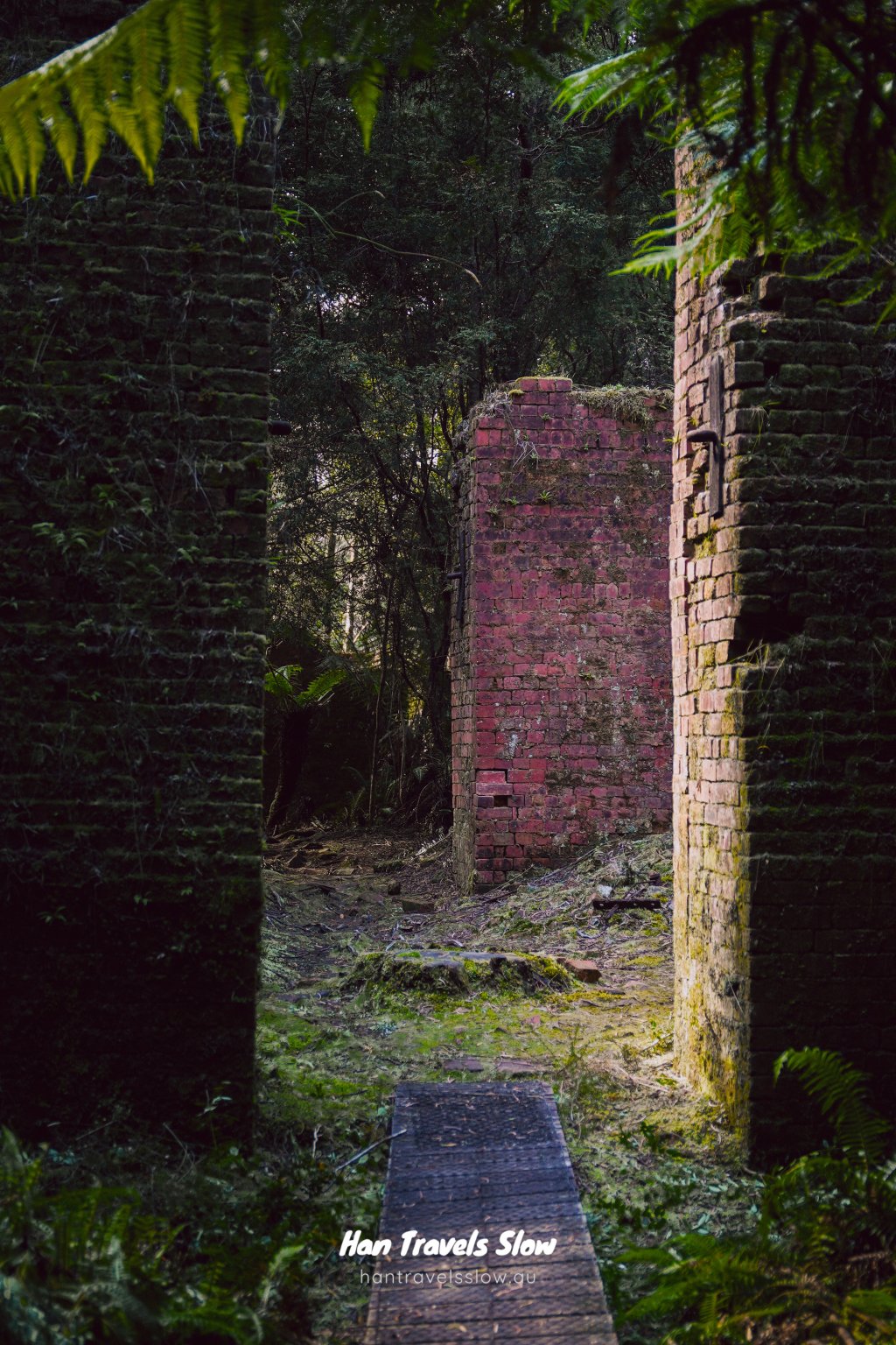 Kelly Basin is unlike most of Tasmania's 60 Great Short Walks. For much of the journey, the trail winds through thick shaded rainforest, following the corridor of an old railway line toward the coast before reaching ruins that feel almost impossible in such a wild setting.