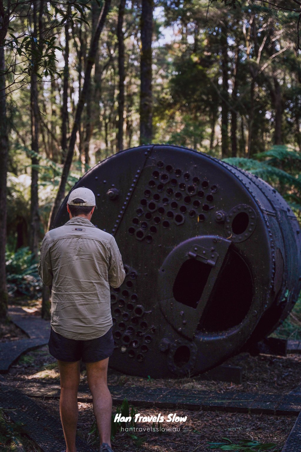 Sawmill footings, industrial boilers, brick kilns and the remains of settlement structures are scattered across the site. The old jetty stretching into Macquarie Harbour is a striking place to stand and think about the lives that once filled this now-quiet forest.