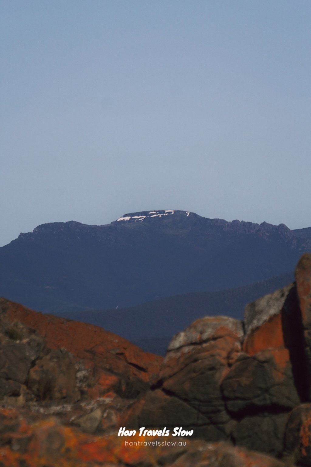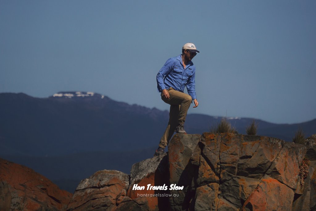 Additionally, winter makes for dramatic views of the snow-capped peaks of Hartz Mountain National Park in the east — best viewed and photographed looking east from Kernow Beach, a magnificent dolerite boulder beach approximately 4 km into your walk.